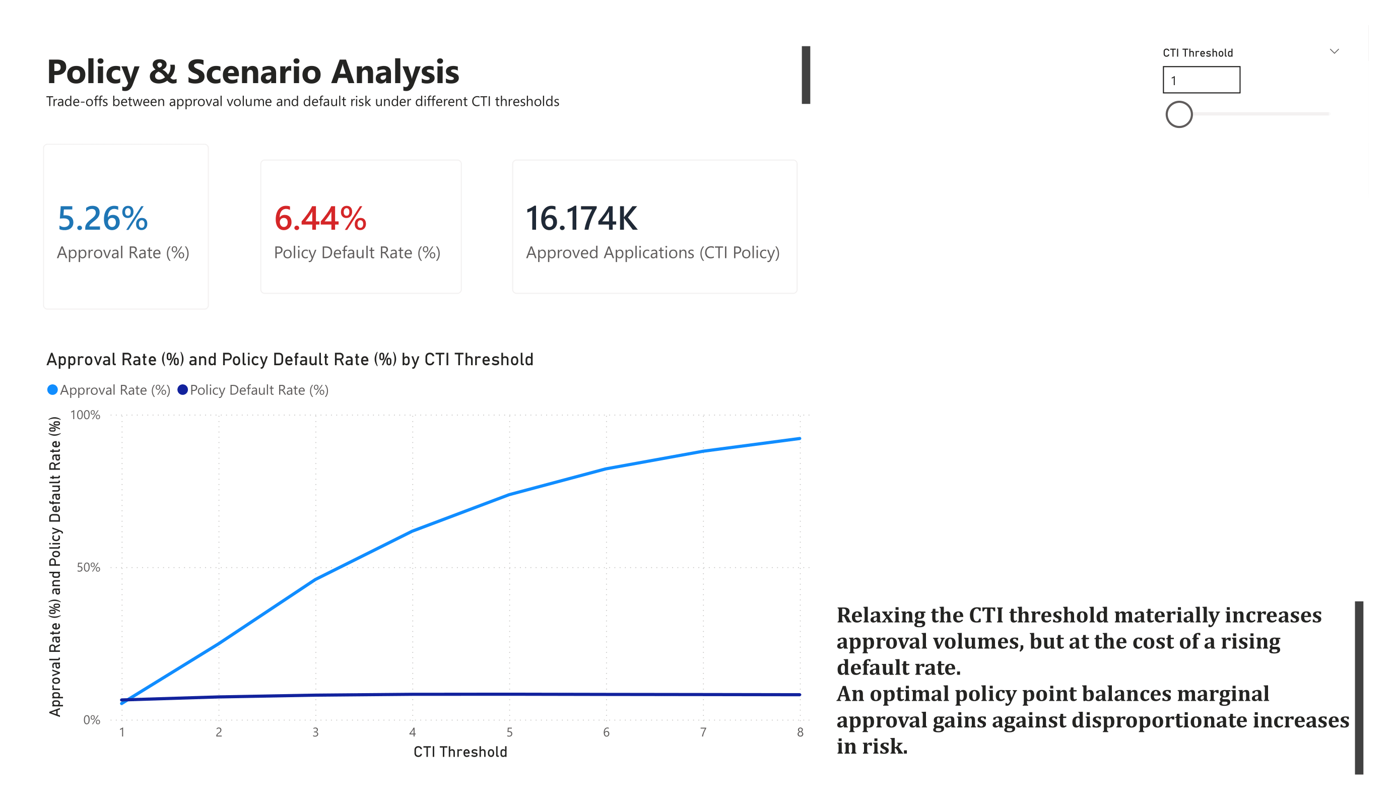 End-to-end credit risk analytics focusing on customer behaviour, affordability indicators, and policy trade-offs.